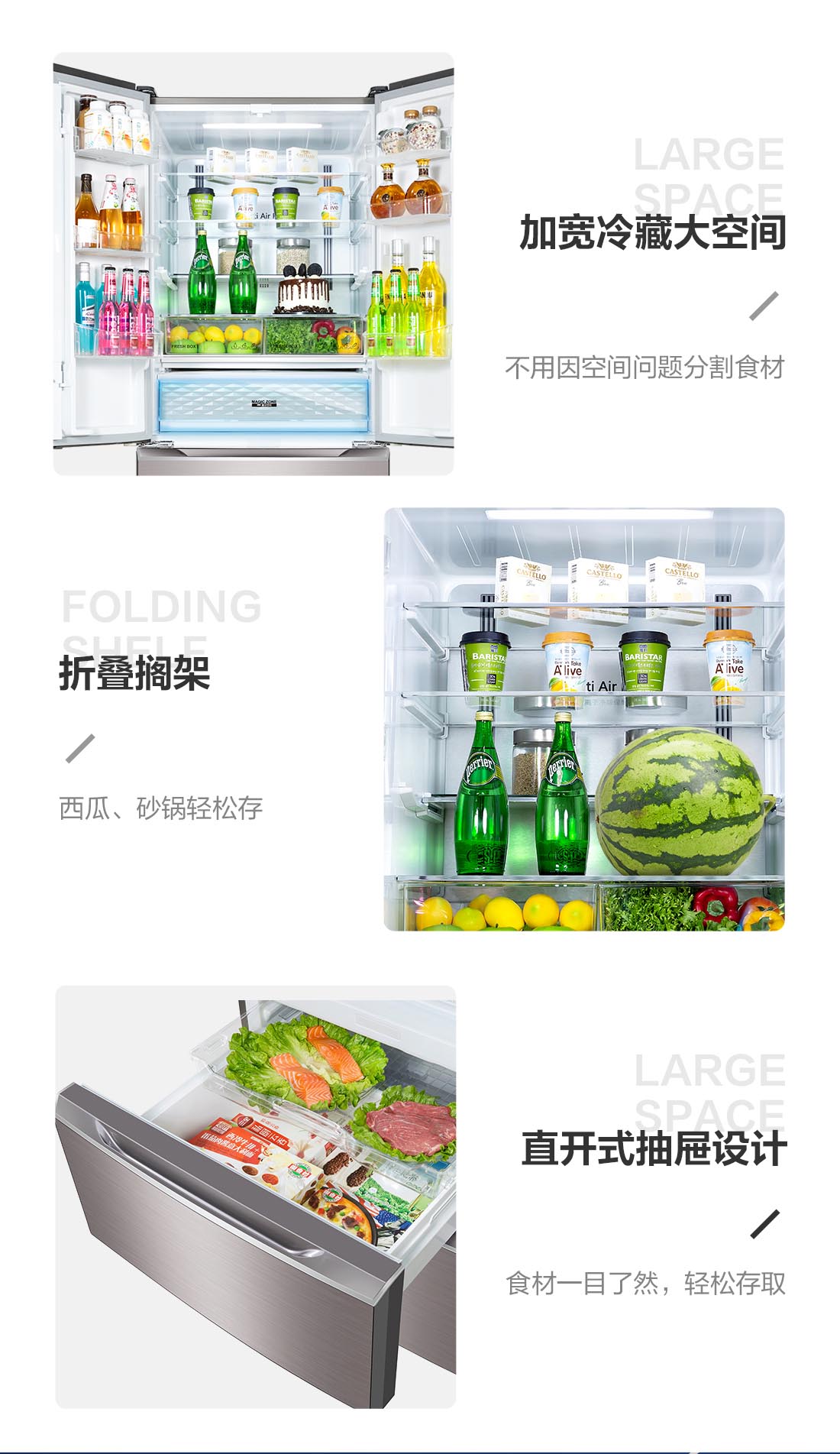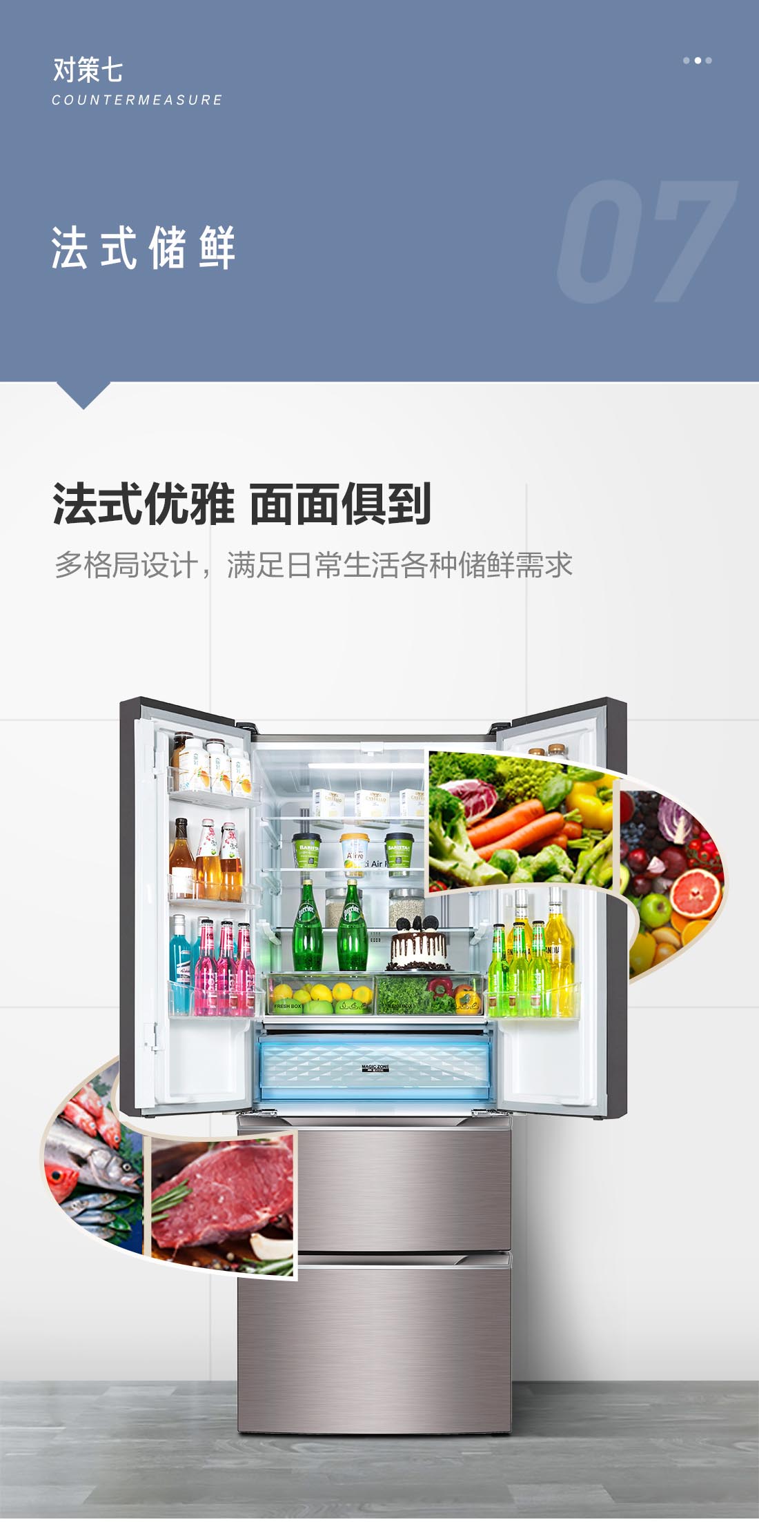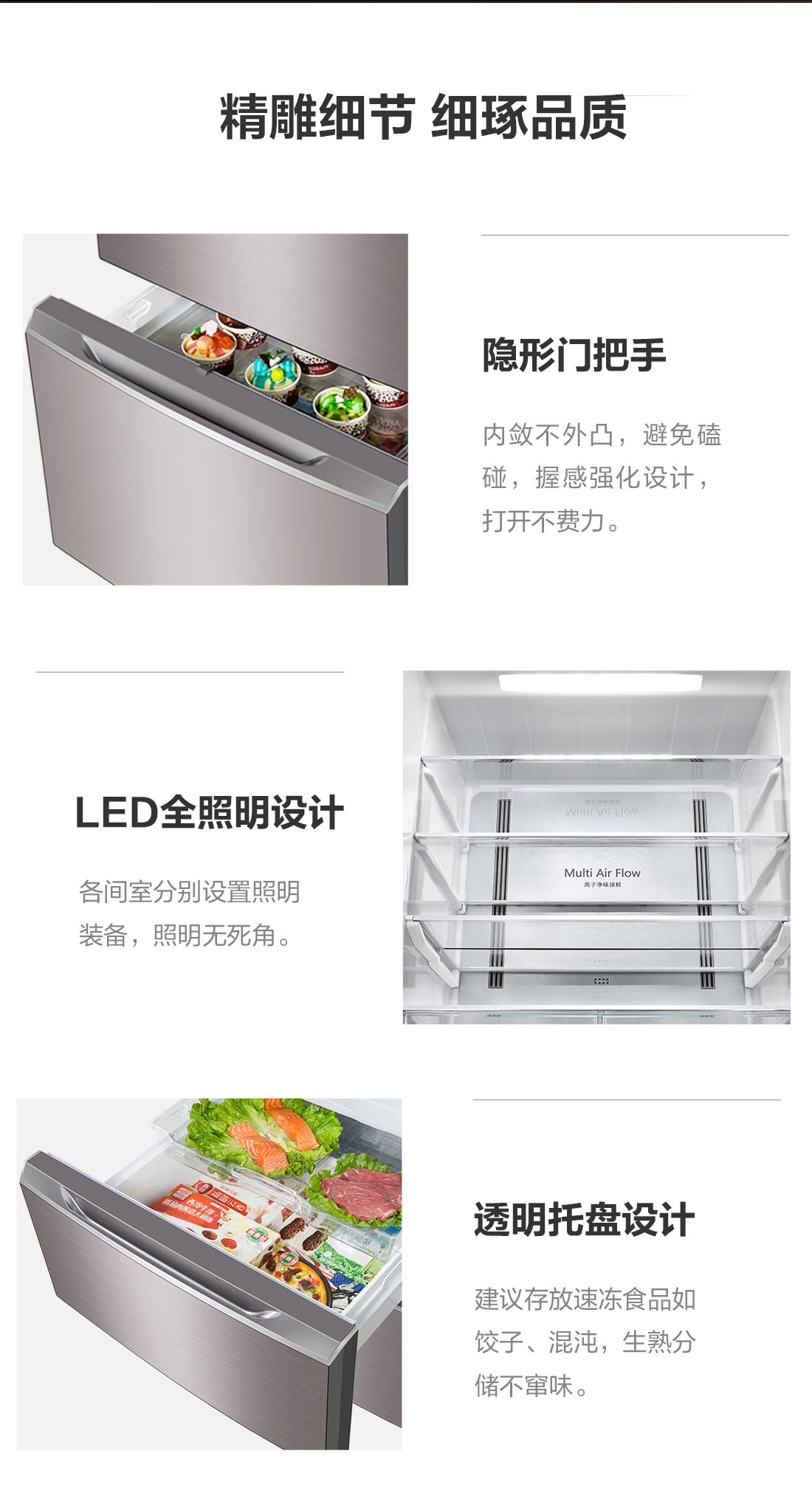 搭載-5℃瞬凍黑科技,鮮嫩兩星期,輕松一刀切。細胞級養(yǎng)鮮,營養(yǎng)流失少。搭載-3℃嫩凍黑科技,食材不結(jié)冰,鮮嫩一整周。智能全變頻技術(shù),恒溫保鮮,節(jié)能靜音。